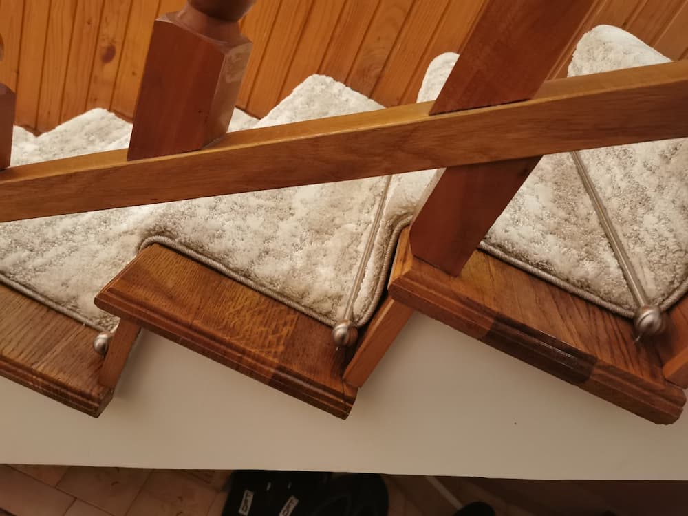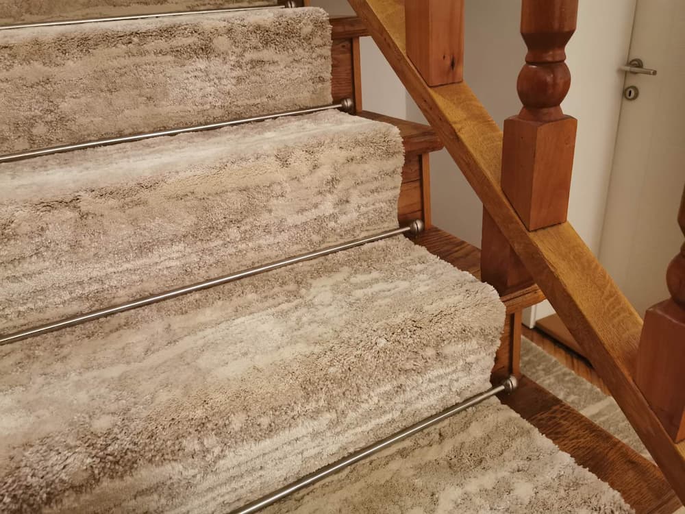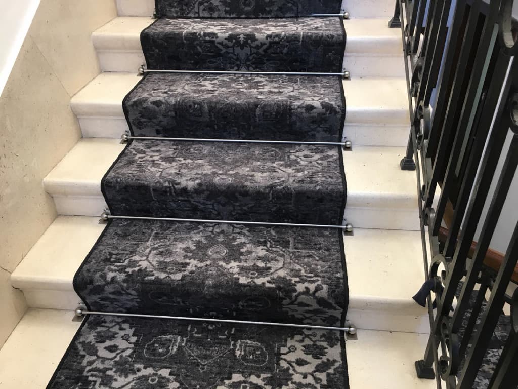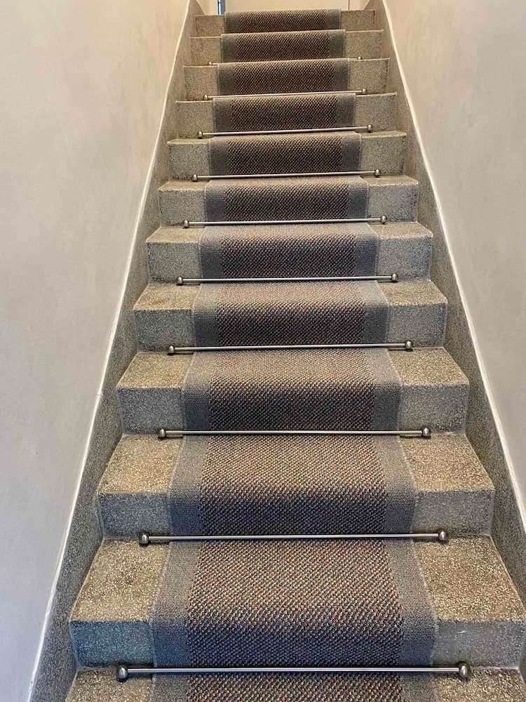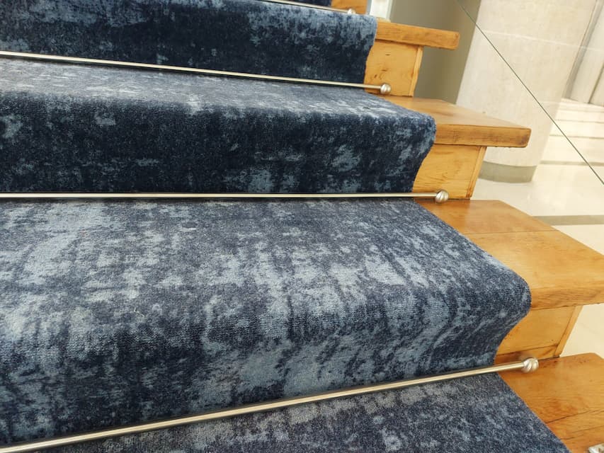 Stair Carpet Rods made of stainless steel, polished finish, mounted on the staircase